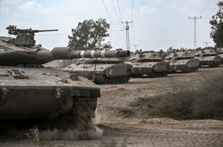 Israeli tanks gather near the border with the Gaza Strip on Oct. 13, 2023. Aris Messinis/AFP via Getty Images